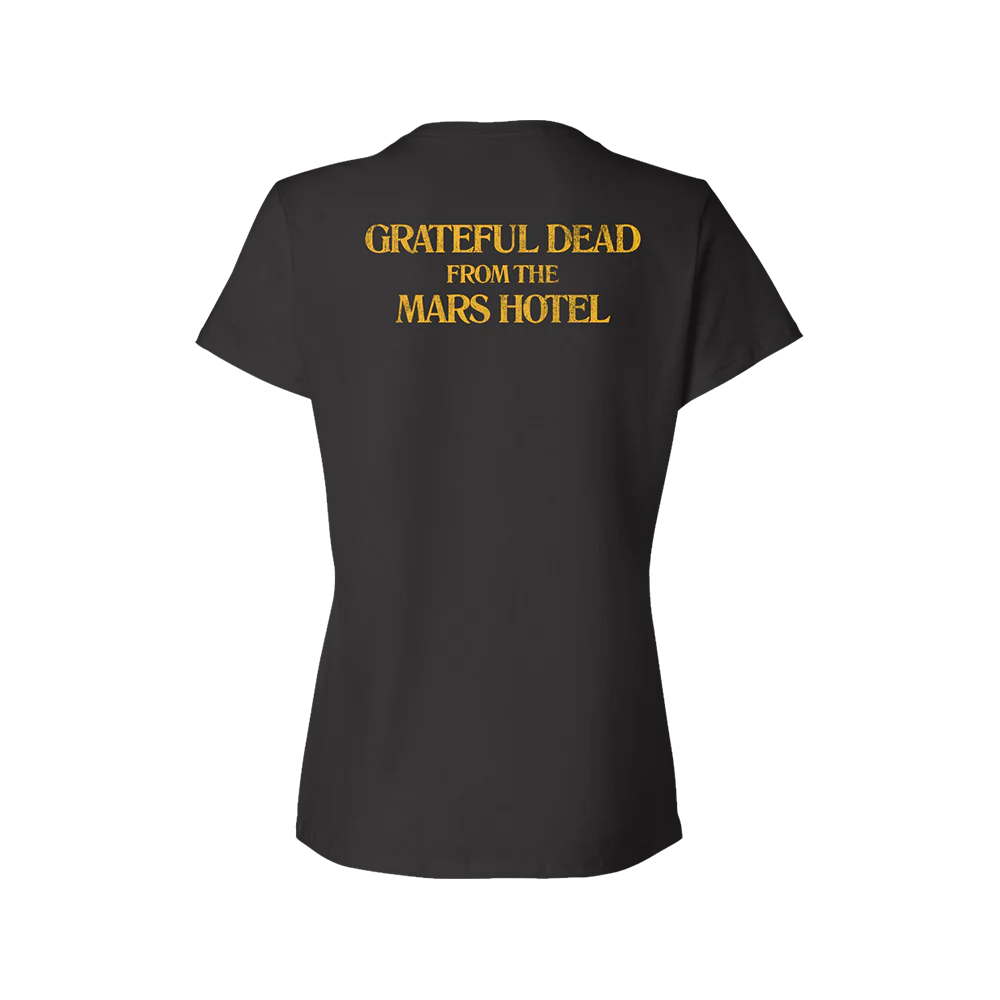 Black, women's style t-shirt with From the Mars Hotel Album art on the front and From the Mars Hotel text on the reverse.